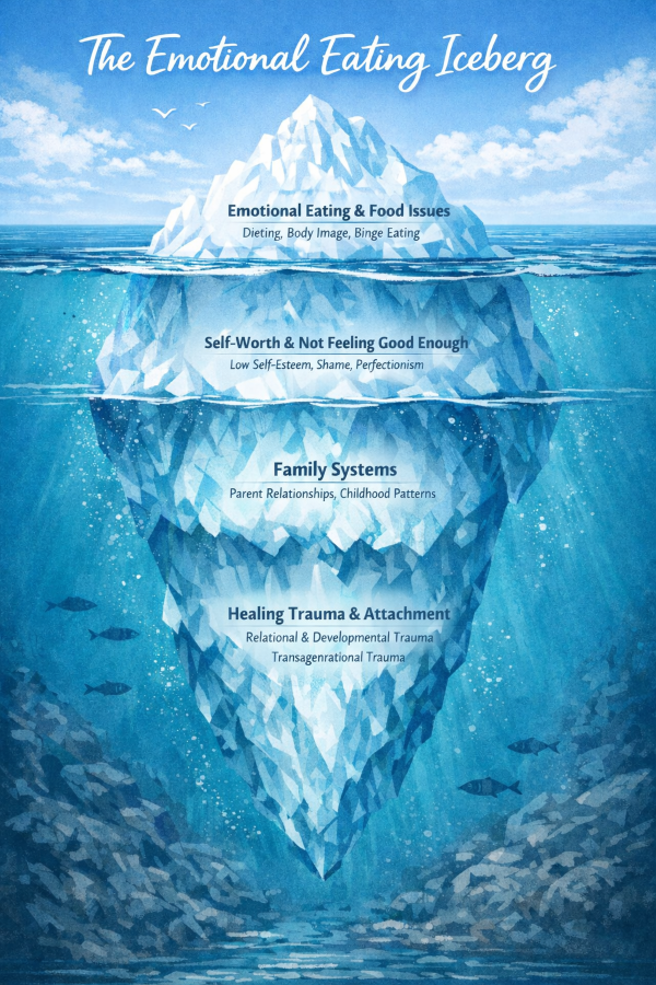 THERAPY FOR EMOTIONAL EATING, TRAUMA AND FEELING NOT GOOD ENOUGH – THE EMOTIONAL EATING ICEBERG